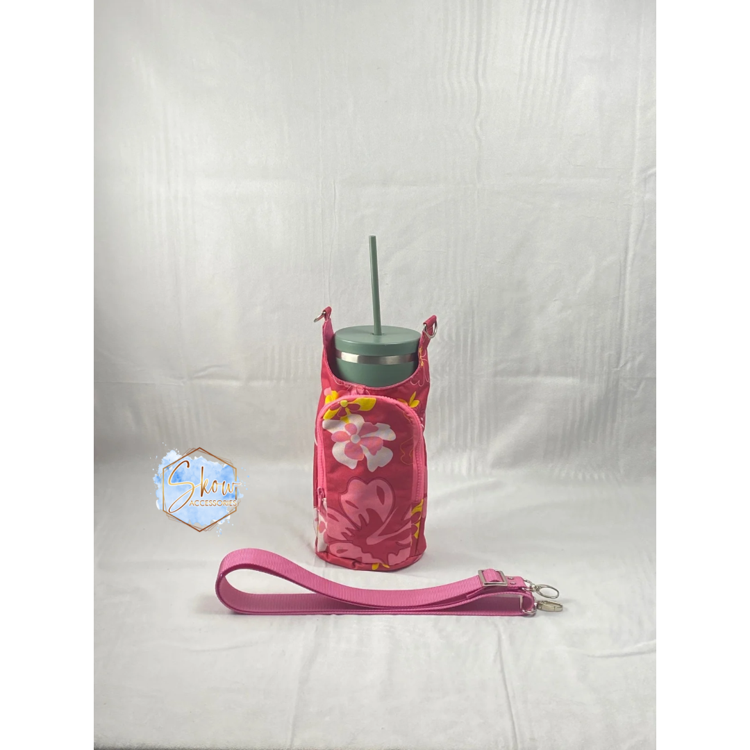 Carry your essentials in style with this Pink Floral Liquid Bag, designed for the modern on-the-go lifestyle. Crafted from durable waterproof canvas, it keeps your belongings protected from spills and splashes. The spacious interior accommodates a 32 oz water bottle with room to spare, while the exterior pocket provides quick access to frequently needed items. Stay organized with four card slots for your ID, credit cards, and more. Reinforced nylon strap and sturdy metal connectors ensure reliable support through daily adventures. Perfect for work, travel, or weekend outings.
